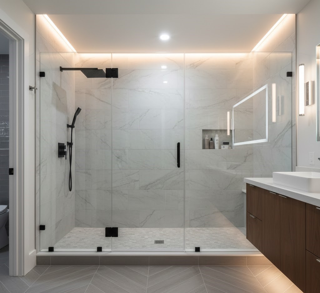 We use luxury-home-grade materials such as acrylic wall panels and Fibo waterproof systems to create seamless, modern bathrooms that will not crack, leak, or require maintenance.